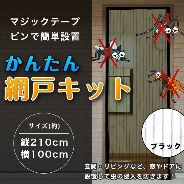 > 送料無料 網戸 キット BK ブラック 黒 蚊よけ マジックテープ 式 玄関 用 簡単 DIY 虫よけ シンプル 建具