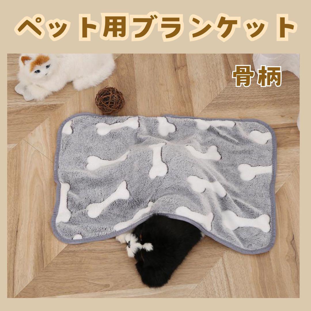 - 【新品】ペット用 ブランケット 骨柄 グレー 毛布 犬 猫 ひざ掛け アウトドア 温 防寒 ペットベット ふわふわ