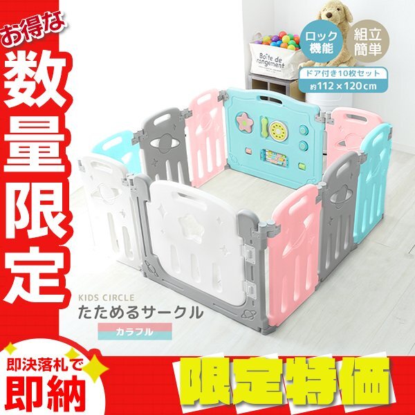 - 【限定セール】ベビーフェンス 10枚セット おもちゃ付 ドアロック 簡単組立 ベビー ガード サークル ミュージカルキッズランド カラフル
