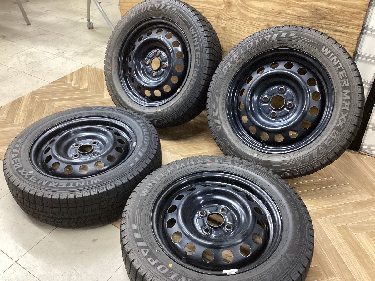 > 【送料無料】DUNLOP WM03 175/65R15 84Q 2020年製 純正スチール付(トヨタ車) 5.0J 4/100 +39 中古1台分 アクア スペイド 等 バリ溝 №25