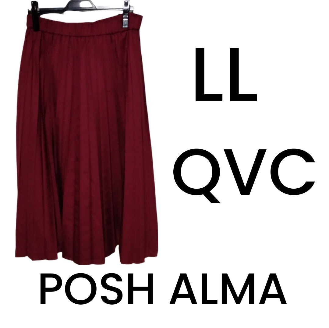 - ポッシュアロマプリーツスカートLL新品タグ付ワインレッドQVC