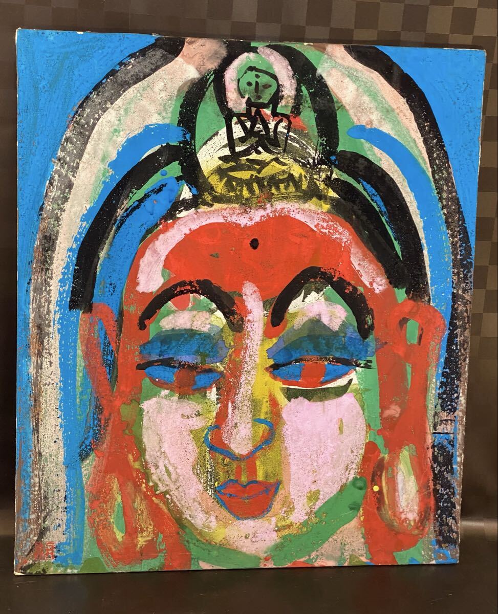 - 真作 絵画 日本画 水野朝 【観音様】 1974年 F10号 板絵のみ 額縁無し 落款 裏面直筆サイン