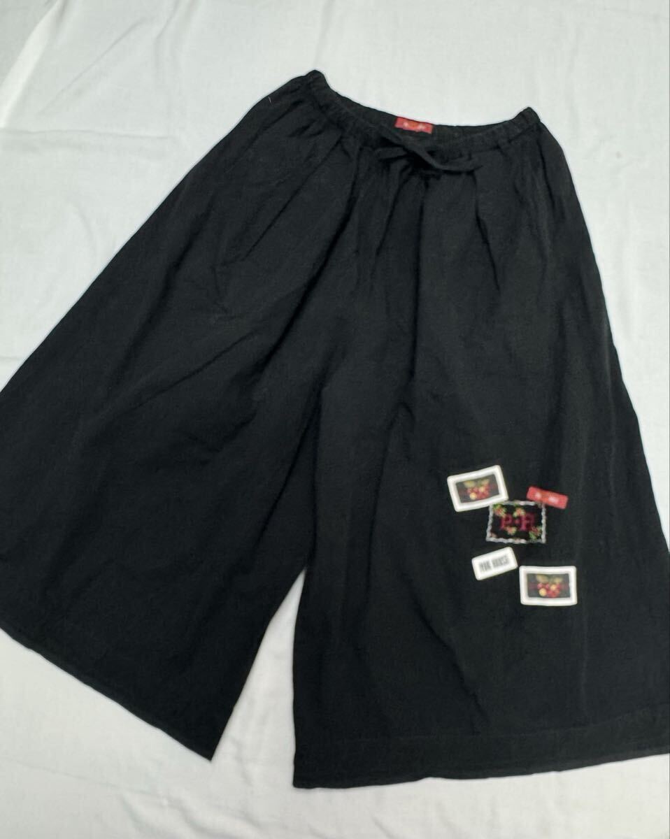 - 【お値下げ】NO269☆ピンクハウス【2022年 】ワッペンが可愛い リネン混 ワイド パンツ 黒
