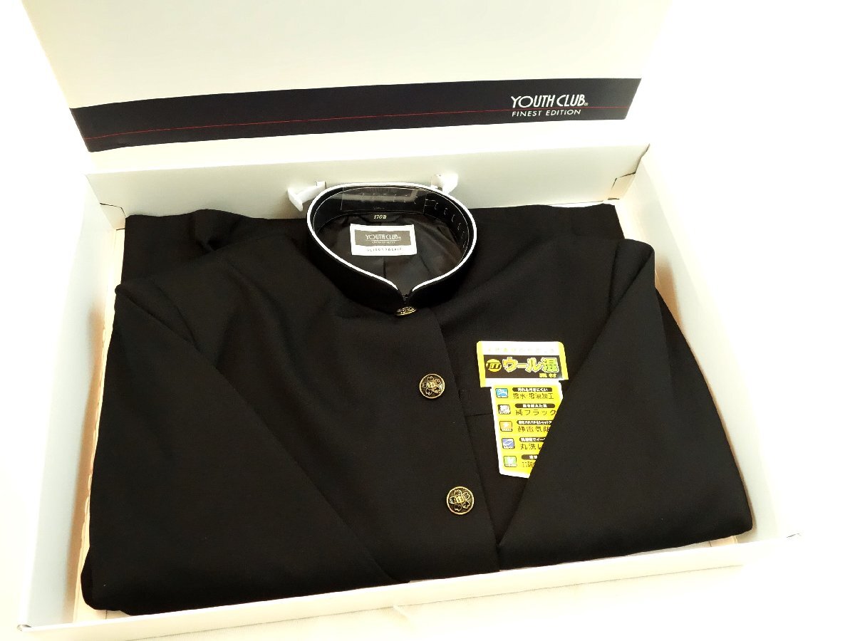 > ★未使用保管品!男子学生服 詰め襟 標準形 170B ソフトカラー 丸洗い 撥水加工 静電気防止 純ブラック