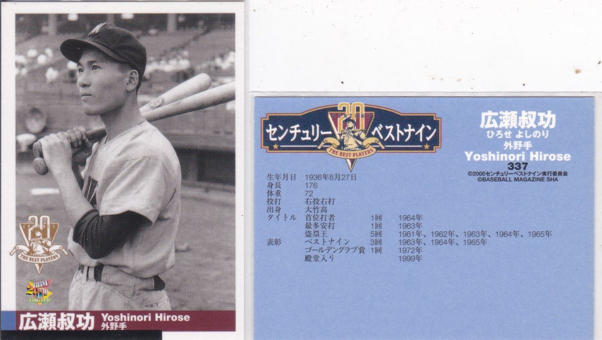 - ●2000BBM【広瀬 叔功】 センチュリー ベスト9 No.337:南海 R2