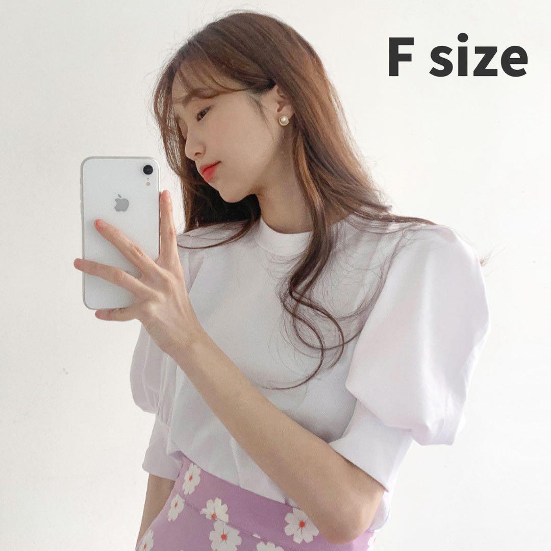 > H58★Tシャツ 無地 ホワイト 白 半袖 パフスリーブ ボリューム袖 薄手 シンプル 着回し オフィス 通勤 レディース 人気 韓国 フリーサイズ