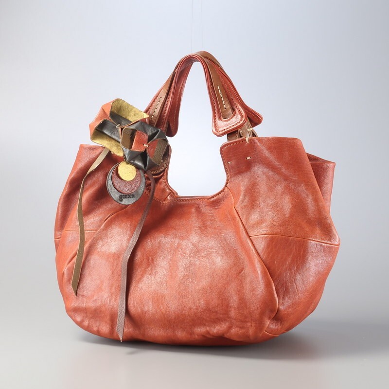 - MI1908■genten ゲンテン レザー ハンドバッグ トートバッグ 手提げ 鞄 仕切り着脱可 ブラウン系