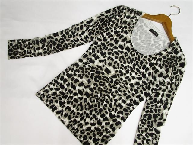 > 美品 エゴイスト EGOIST 洗える 長袖 Uネック ニットカットソー オフホワイト×グレージュ×ブラック アニマル柄 【メール便可】