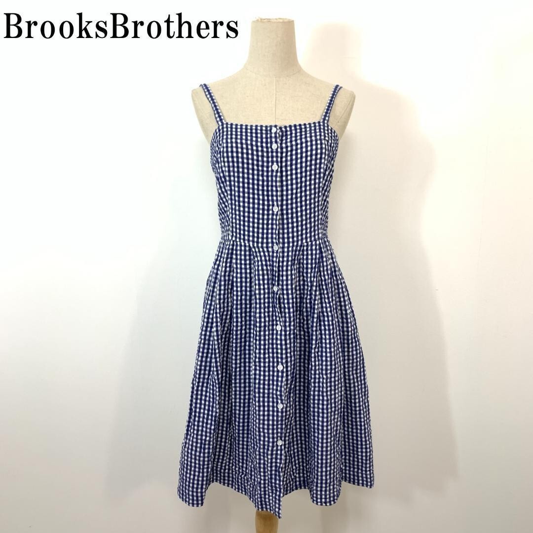 - LA7828 ブルックスブラザーズ BrooksBrothers チェック ギンガムチェック ブロックチェック フレア キャミソールワンピース ブルー 綿 XS