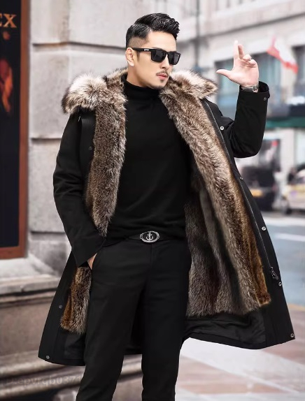 > ファーコート♪新入荷 ロングコート 高品質 メンズ 厚手 ゆったり フード付き 毛皮 フェイクファー 紳士 アウター サイズ選択可 黒/2XL