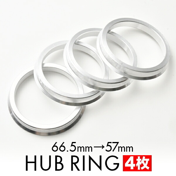 > ツバ付き アルミ ハブリング 66 57 外径/内径 66.5mm→ 57.1mm 4枚セット アウディ フォルクスワーゲン HR10