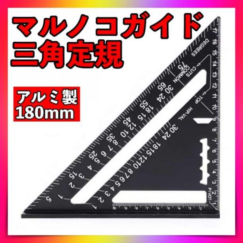 - 三角定規 マルノコガイド アルミ製 2x4 丸ノコ 180mm 黒ブラック