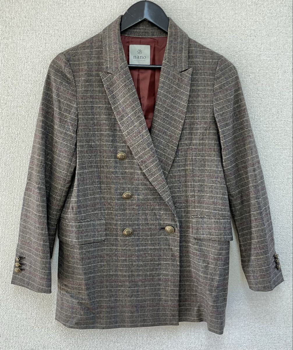 - nano UNIVERSE ナノユニバース チェック柄 レーヨンジャケット ブレザー レディース 36号 Sサイズ グレー系