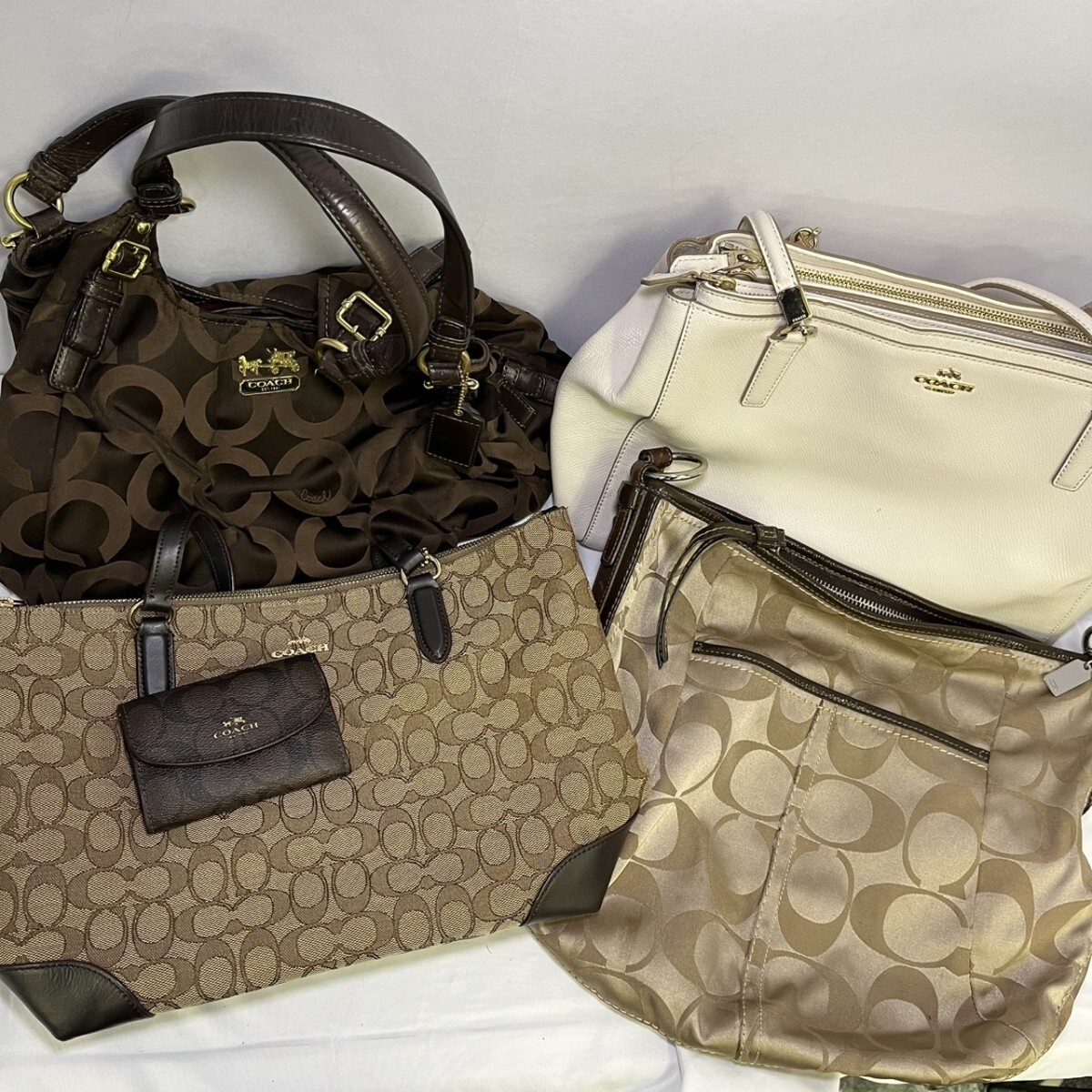 - 【まとめ売り】COACH コーチ カバン バッグ キーケース 中古 シグネチャー柄 トートバッグ ハンドバッグ ブラウン ホワイト