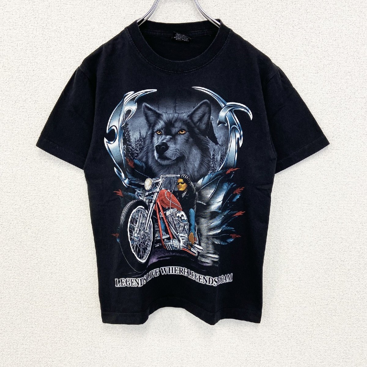 > 古着 used OTHER TEE 半袖プリントTシャツ オオカミ バイク 春夏服 ヴィンテージ風 クルーネック 黒 Sサイズ