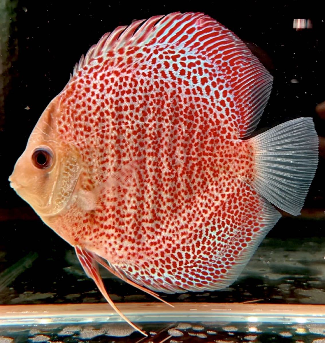 > 【無限華選別】レッドレオパードスポット ディスカス 約13〜14cm|細かいスポット・バランス良好・日本水順応済