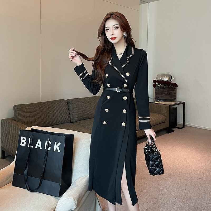 - 長袖ワンピース フリル ひざ丈ワンピ きれいめ かわいい レトロ 秋冬 S ブラック