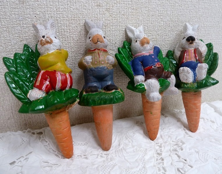 - (☆BM)キャロット ラビット 人参 うさぎ オーナメント 4点 陶器製 飾り アクセント オブジェ ガーデンファニチャー ガーデニング 鉢 植木