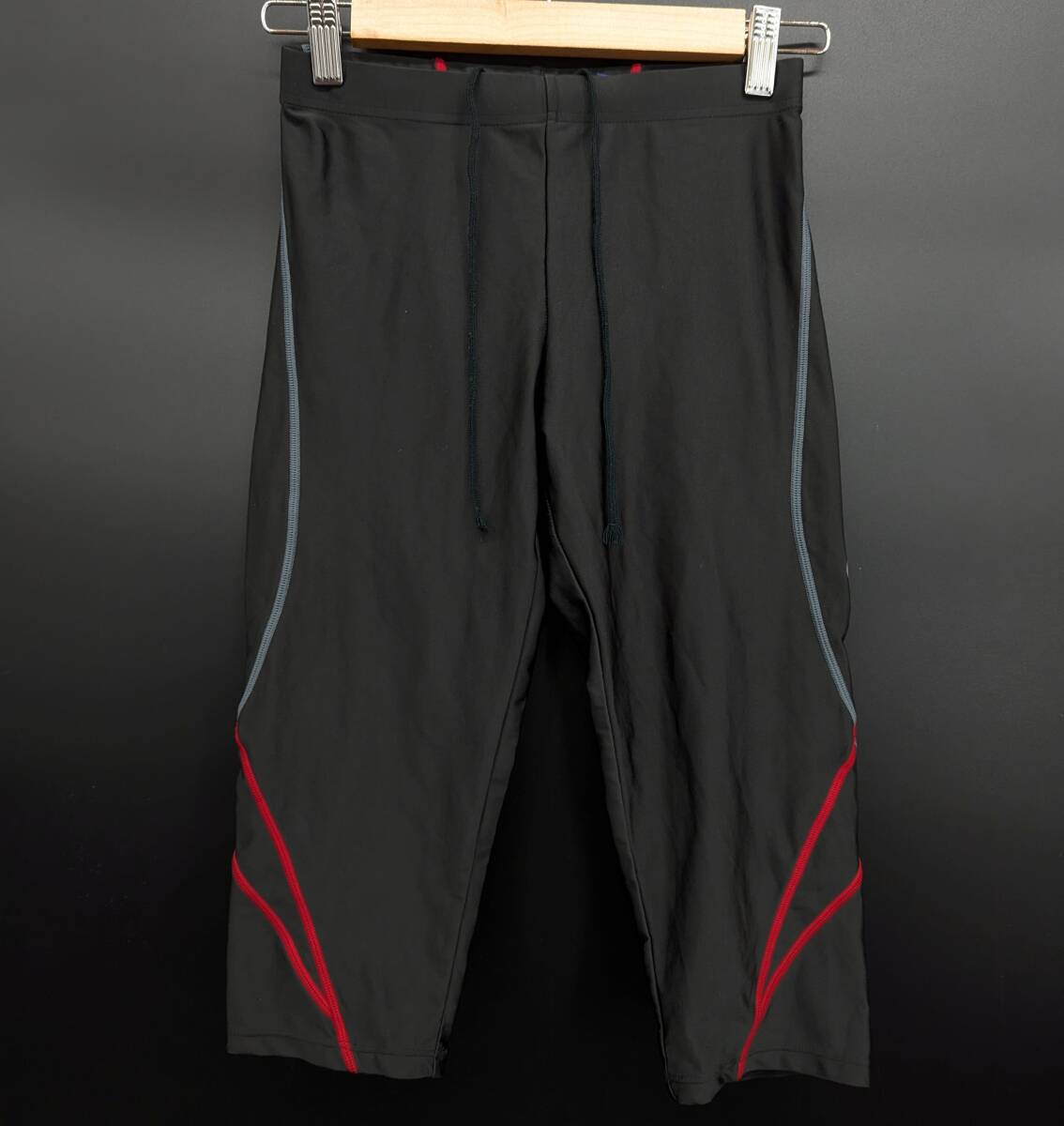- 4631C 送料185円♪ asics アシックス XX071X メンズ ダークグレー 赤 グレーライン セミロング レーシングタイツ