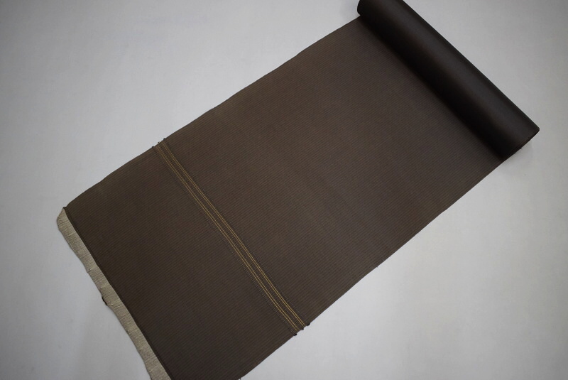 - B22-1【凛々】新古品 正絹 袴生地 反物 こげ茶 縞柄 未仕立て品