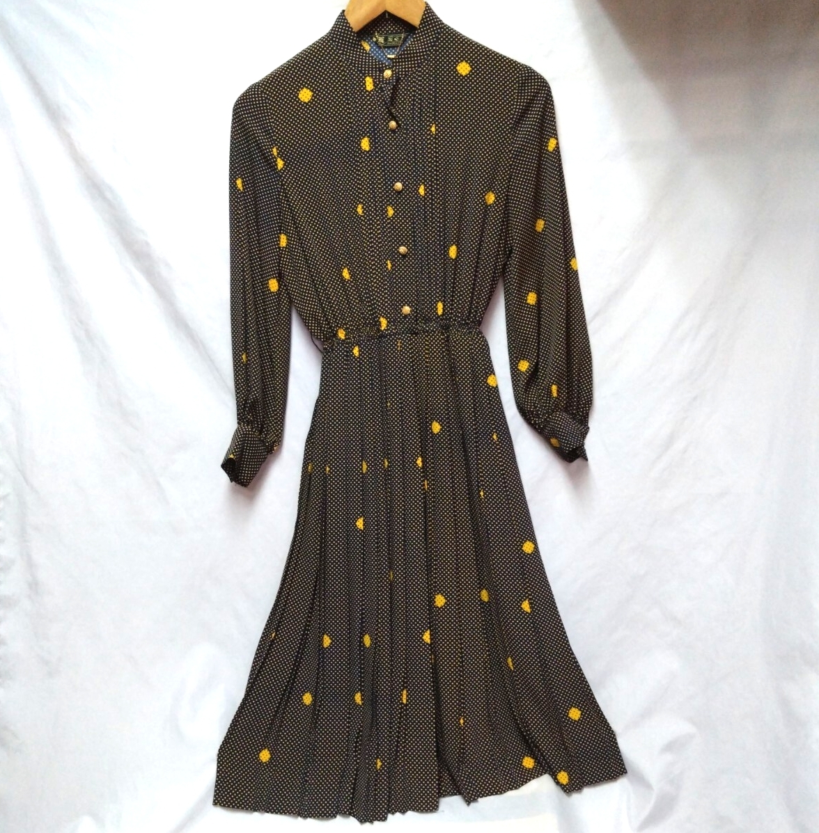 - EZE MADE A ELEGANCE RocoAtelien Takada レトロ風 ワンピース 水玉模様 80年代 フレアースカート 金ボタン 日本製 made in japan