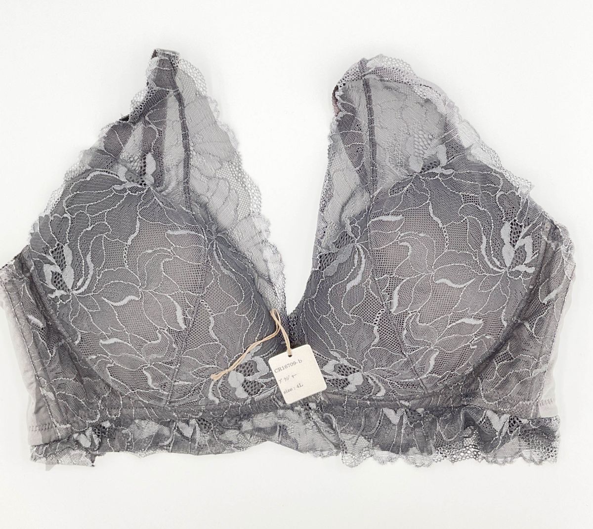 - CR16709 IB⑦【特価】新品 ブラジャー 4L 1枚 グレー レース 花柄 ノンワイヤー 3/4カップ ストレッチ おしゃれ レディース