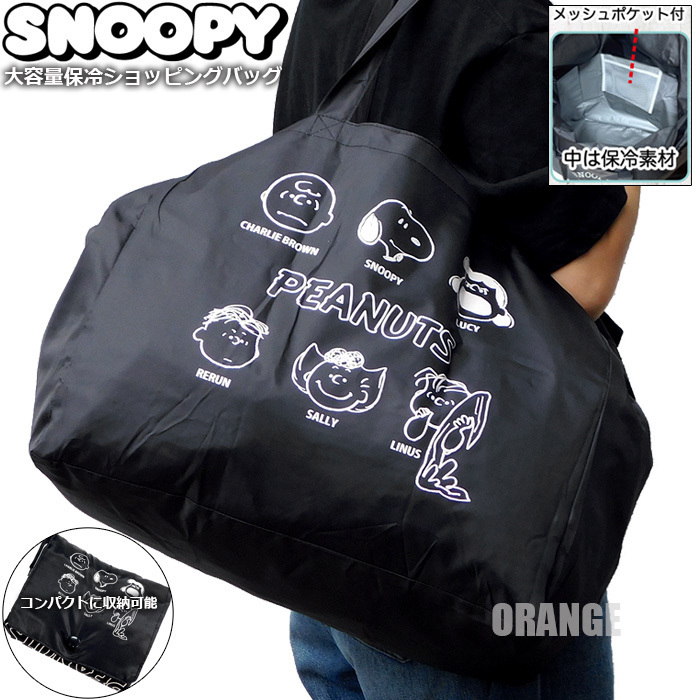 - 送料無料 スヌーピー 大容量 保冷バッグ コンパクト 折りたたみ レジカゴバッグ クーラーバッグ エコバッグ レディース メンズ ブラック□