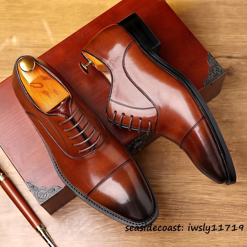 - 超美品*特売 本革 メンズシューズ ビジネスシューズ イギリス風 職人手作り 紳士靴 牛革 レザーシューズ 通勤 結婚式 新品 ブラウン 25.5cm