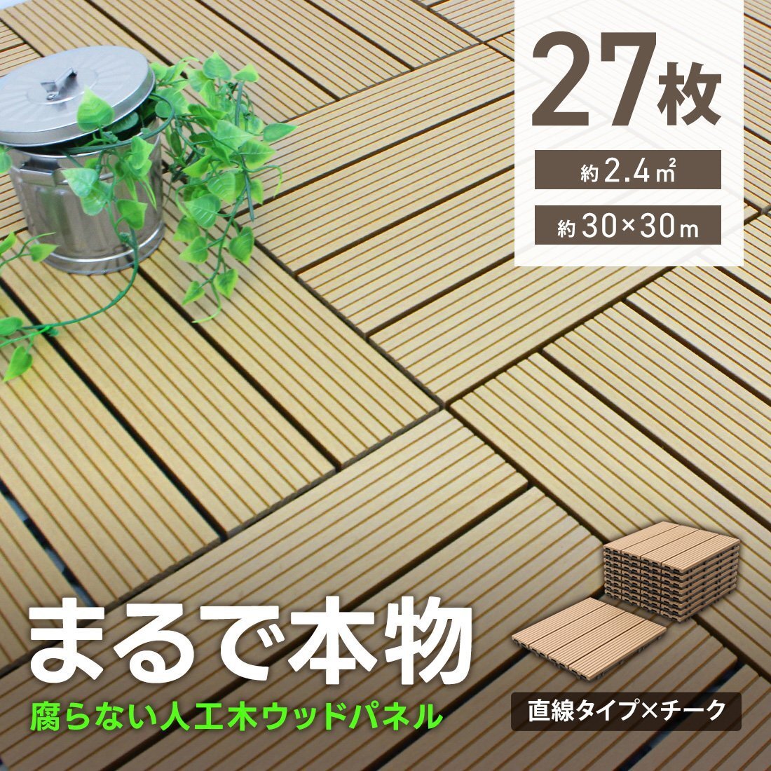 > ウッドパネル ウッドデッキ 人工木 27枚 腐らない ジョイント式 ウッドタイル パネル タイル ベランダ ガーデン バルコニー デッキ 新品