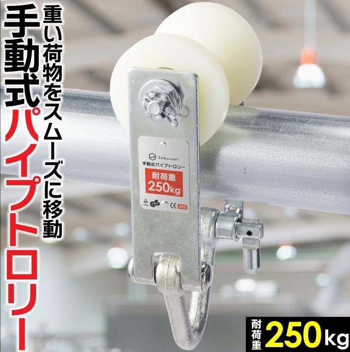 > 【国際規格品】パイプトロリー 単管用 定格荷重:250kg 適用パイプ径:35~60mm チェーンブロック・レバーホイスト用 0.25t 回転式キャスター