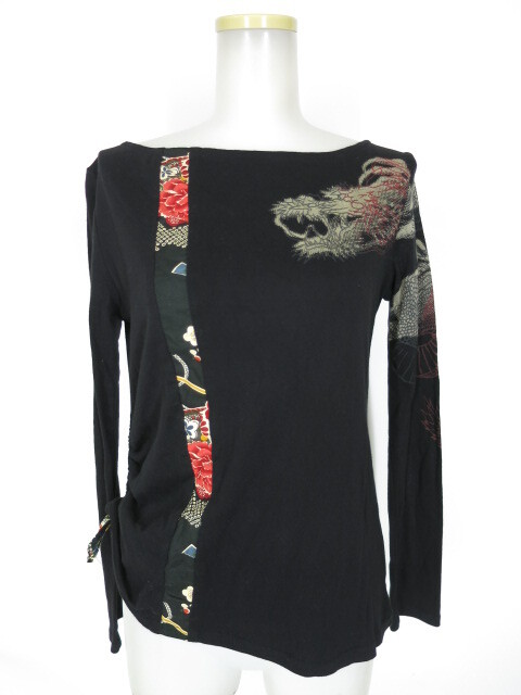 - gouk 龍プリント和柄切替長袖カットソー / ゴウク [B71037]