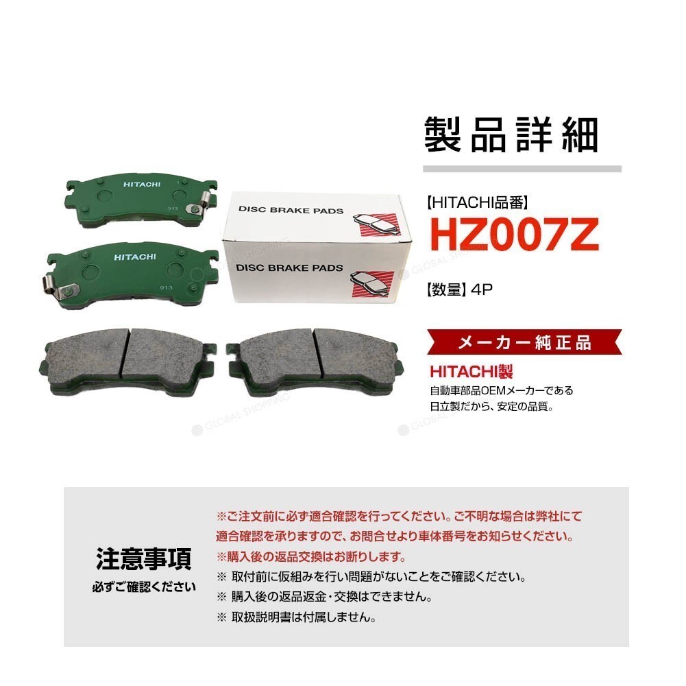 - 日立 ブレーキパッド HZ007Z マツダ MX-6 GE5B GE5S GEEB GEES フロント用 ディスクパッド フロント 左右set 4枚 H3.11-