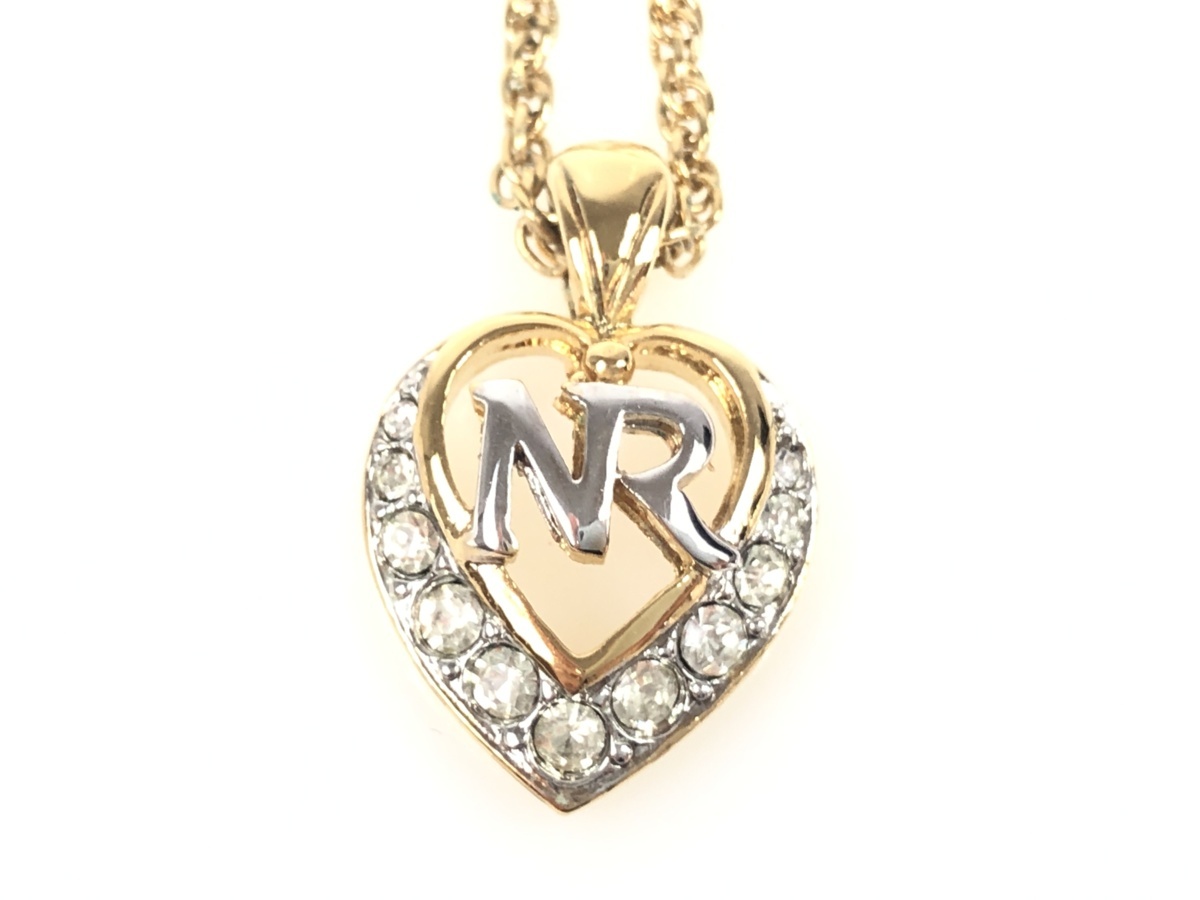 - ニナリッチ NINA RICH ロゴ ハート ネックレス 幅1.5cm ラインストーン×ゴールドカラー YAS-4198