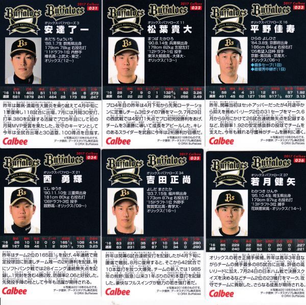 - ●2017カルビー【安達,松葉,平野,西,吉田,若月】通常版全6種セット No.031~036:オリックス