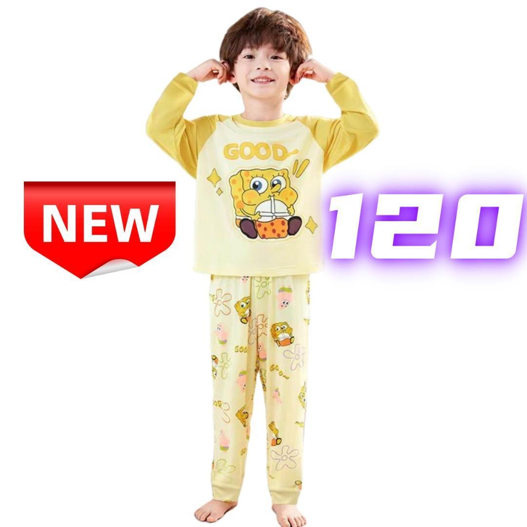 - [新品]スポンジボブ キッズパジャマ 春秋冬 長袖 上下セット 可愛い 子供服 男の子 女の子 ルームウェア 部屋着 寝巻き 厚手 ギフト 120cm