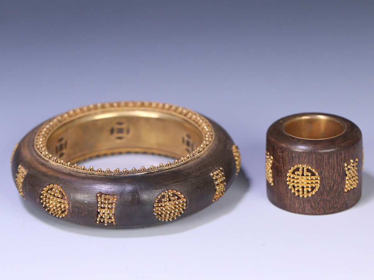 - ▽鴻▽清時代 珍木彫 嵌め銀金 寿紋板指 腕輪 非常に良い香り 時代物 中国古美術 骨董品