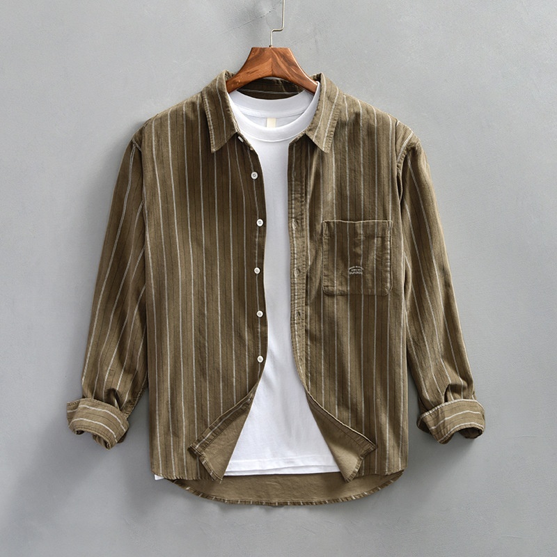 - シャツジャケット 長袖シャツ 新品★メンズファッション 春秋冬服 トップス ストライプ コットン ウエスタンシャツ【ZG919】珈琲色 XL