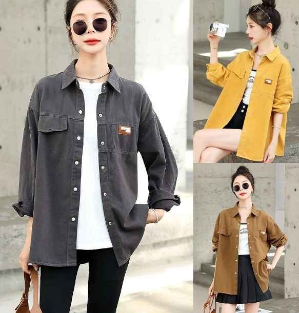 - 全6色 長袖シャツ 切り替え 体型カバー 着痩せ デニム シンプル L オフホワイト