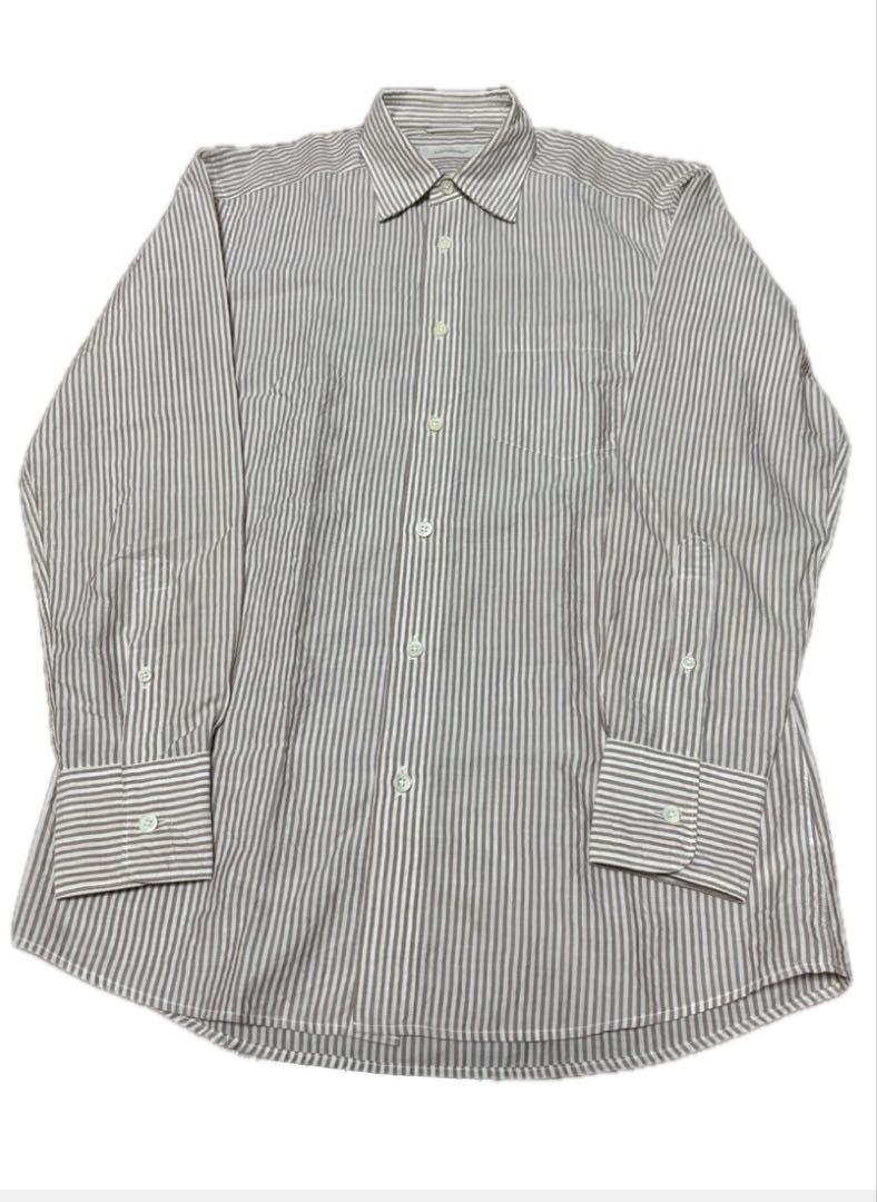 > 美品 エルメネジルドゼニア Ermenegildo Zegna ストライプ ボタンダウン シャツ 長袖 ドレスシャツ ワンシャツ メンズ S