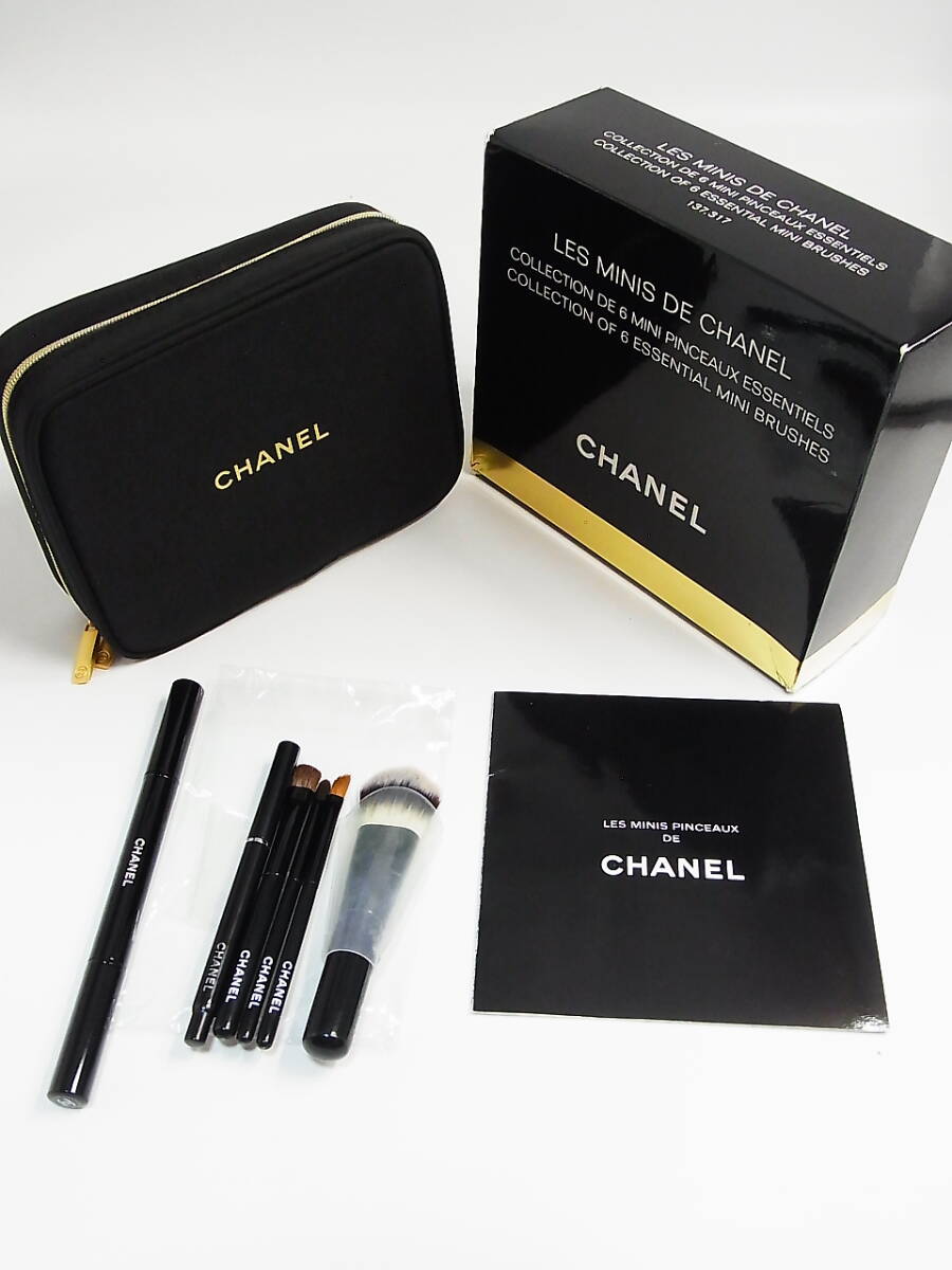 - 1円~ 未使用 CHANEL レ ミニ ドゥ シャネル 2010 ミニブラシセット 6本 化粧ポーチ ブラック 黒 メイク用ブラシ 箱 冊子付き
