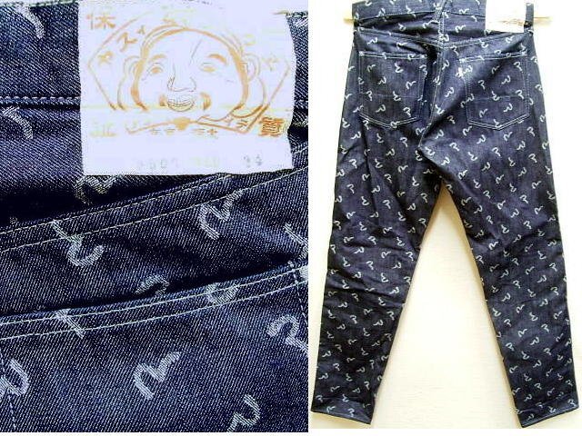 > 即決[W34]濃紺 EVISU 5500 スリム ジャガード カモメ 総柄 インディゴ デニム エヴィス パンツ■2781