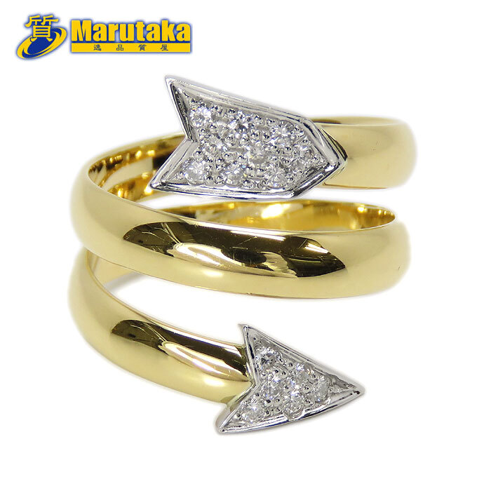 - 送料無料 K18 Pt900 ダイヤモンド リング 16号 指輪 コンビ イエローゴールド 矢印 矢 アロー ボリューム 逸品質屋 丸高 21-66-2