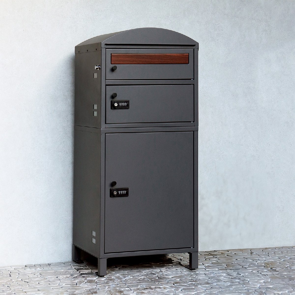 - 宅配ボックス ダークグレー 玄関収納 鍵付き おしゃれ 完成品 ポスト付き宅配ボックス 宅配3段タイプ