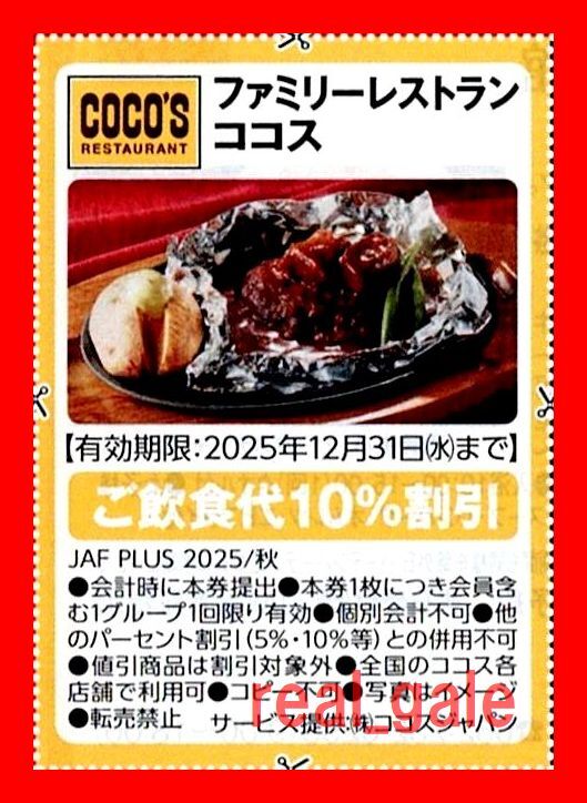 - ■■送料無料■■ファミリーレストランココス 10%割引券■2025年12月31日まで■