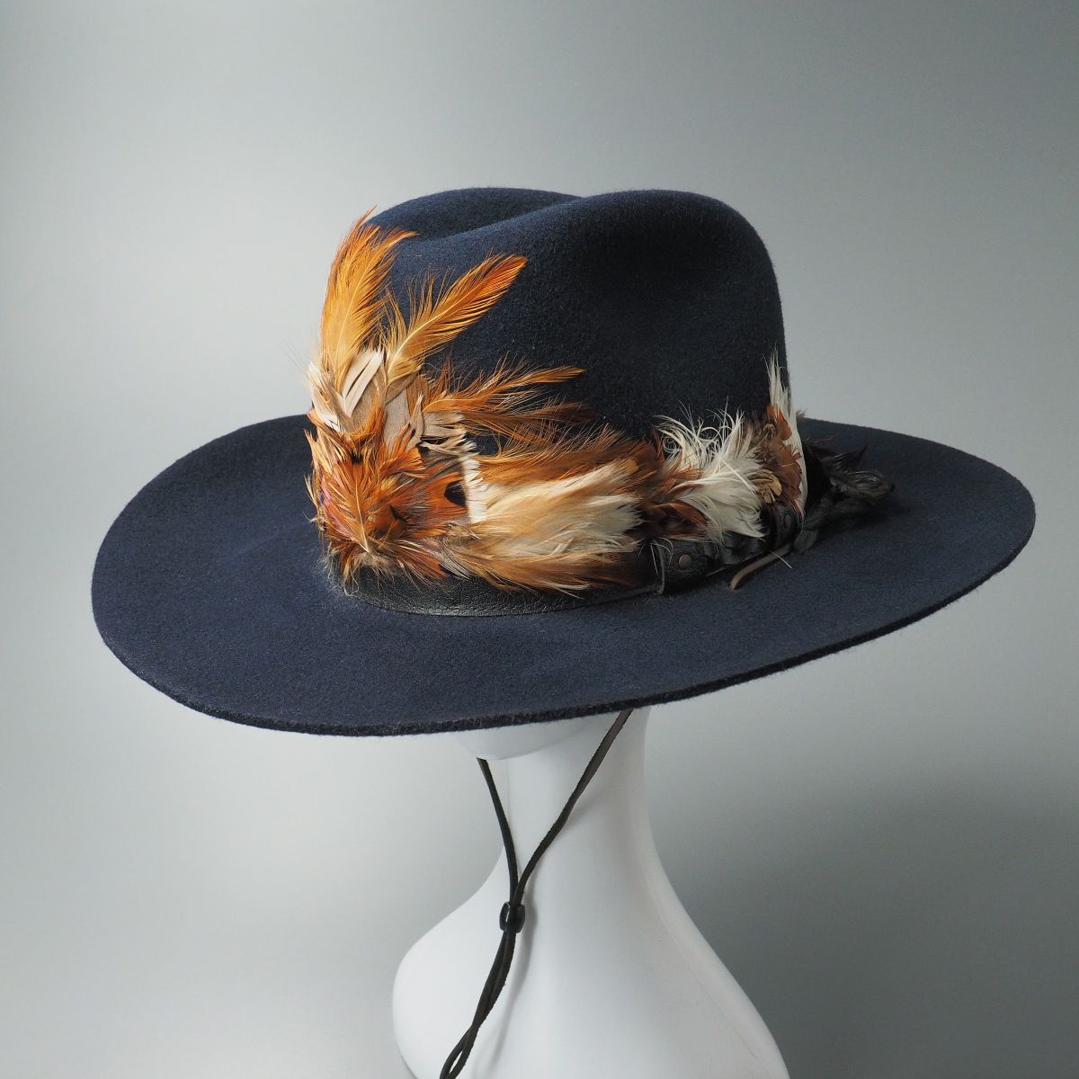 > TJ1232//ヴィンテージ*ビルトモア/BILTMORE*HILAND/メンズ7 1/4 /58cm/フェザー装飾/ウエスタンハット/カウボーイハット/帽子/ネイビー/紺