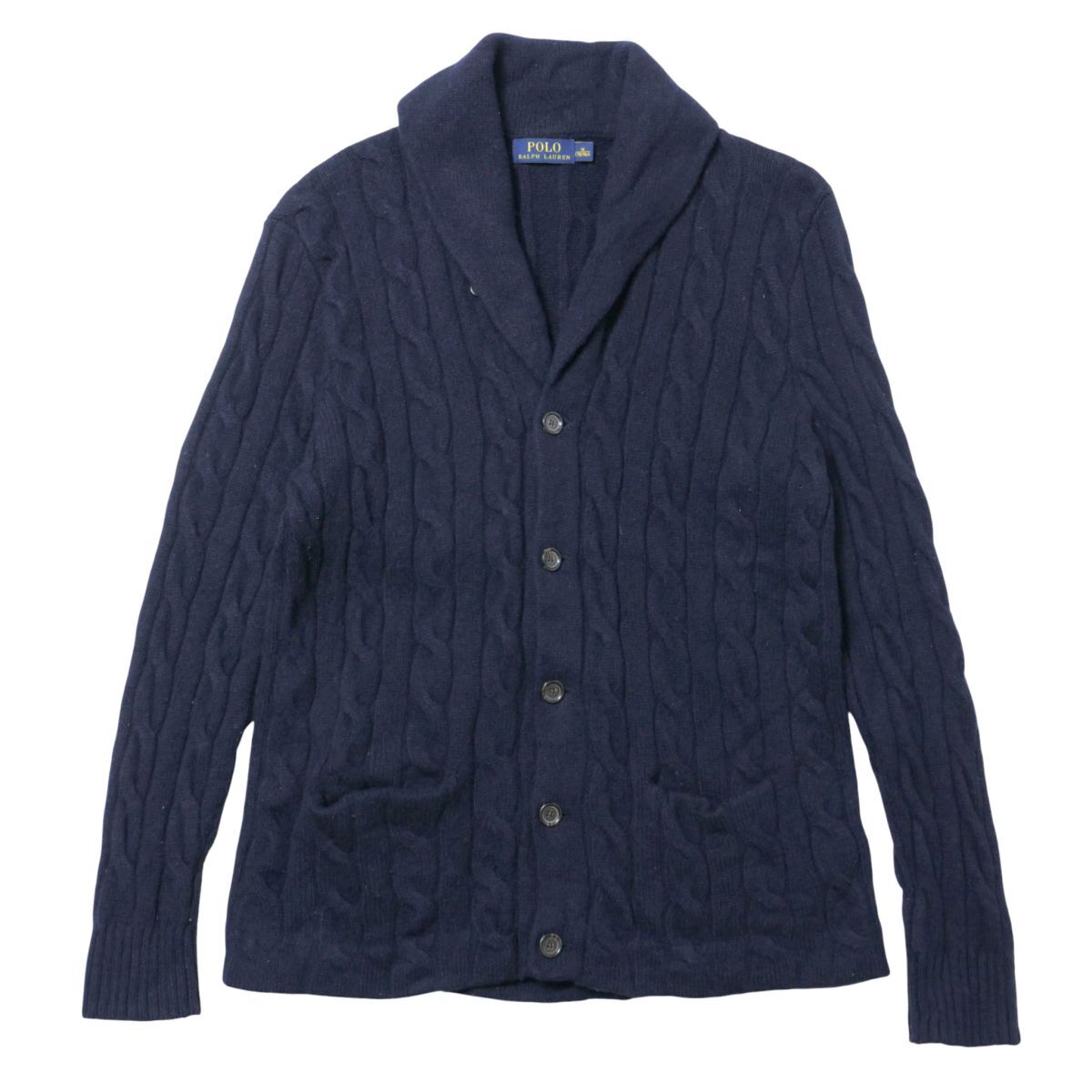 - TJ3038▽ポロラルフローレン/POLO RALPH LAUREN*メンズ*ウールニット*ケーブル編み*ショールカラー カーディガン*ネイビー系