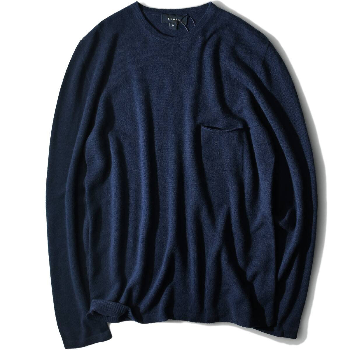カットソー感覚で着られる胸ポケット付きロングスリーブニット。最高峰のカシミア生地を纏ったミニマルな一枚は、