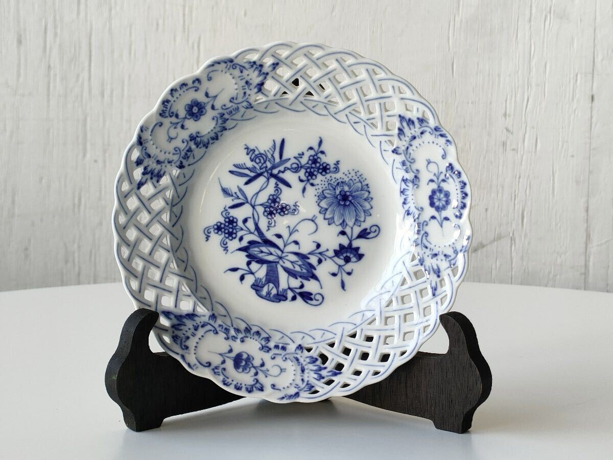 > 美品 Meissen ブルーオニオン Φ15.5cm 透かし彫り ケーキ プレート 洋食器 80年代 マイセン 管251034