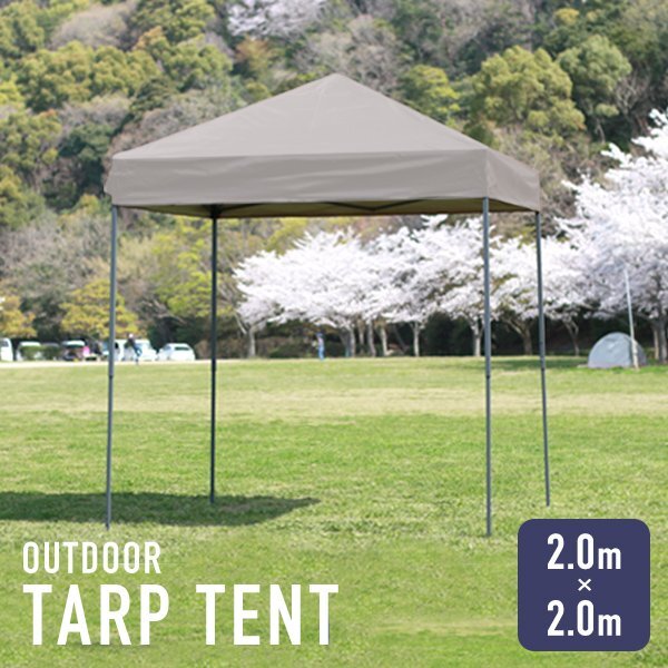 > 新品 タープテント 2m 収納ケース付き 軽量 ワンタッチスチールフレーム 簡単組立 UVカット キャンプ アウトドア イベント 庭 BBQ ベージュ
