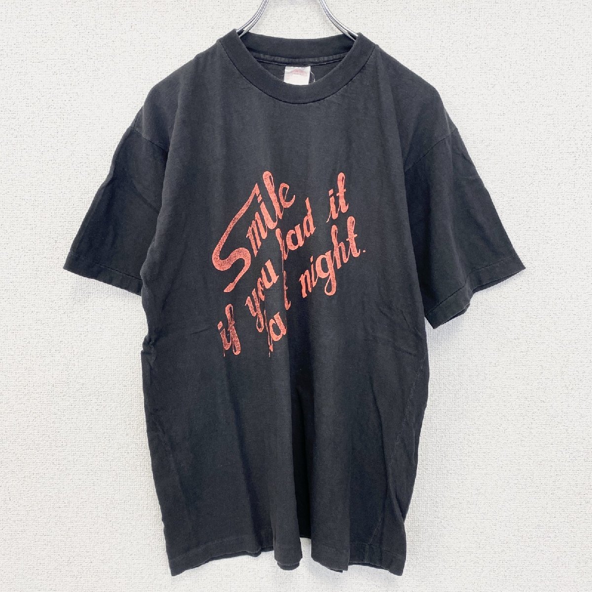 - 古着 used 半袖プリントTシャツ 英字 灰色 ダークグレー 100%コットン シングルステッチ XLサイズ